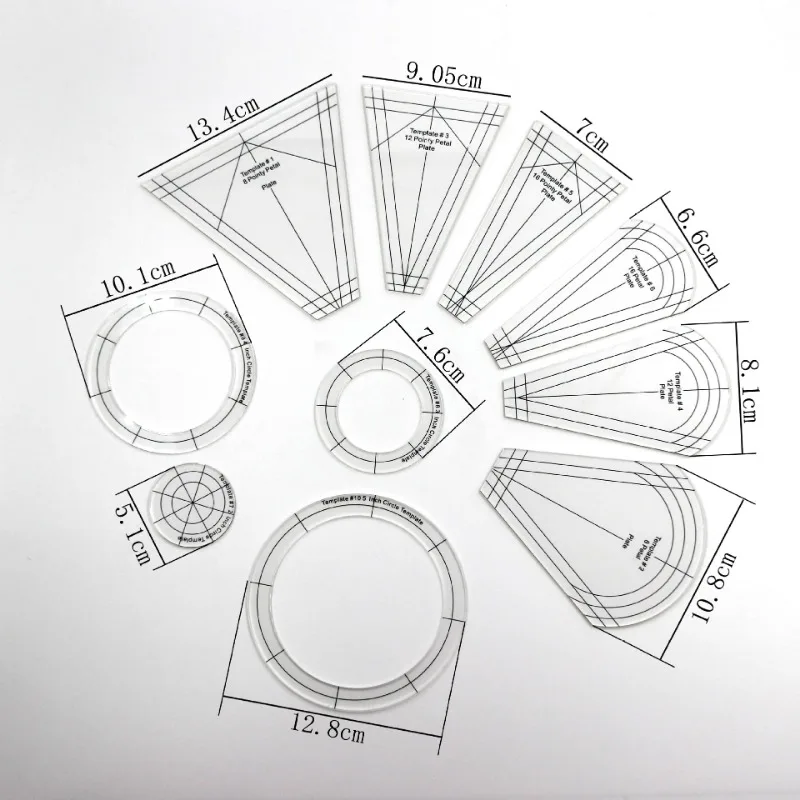 10Pcs Acrylic Template Set Quilting Template Free Motion Sewing Ruler