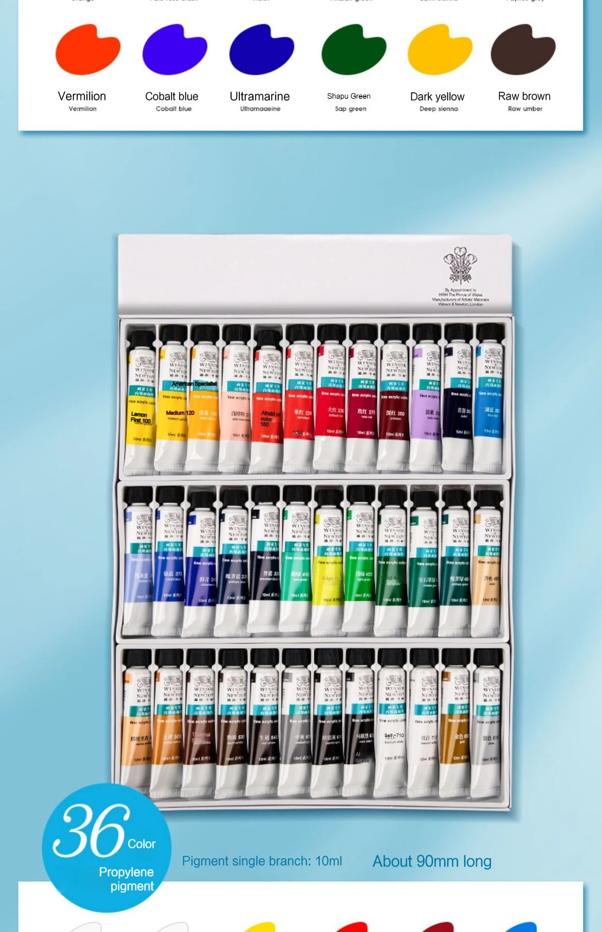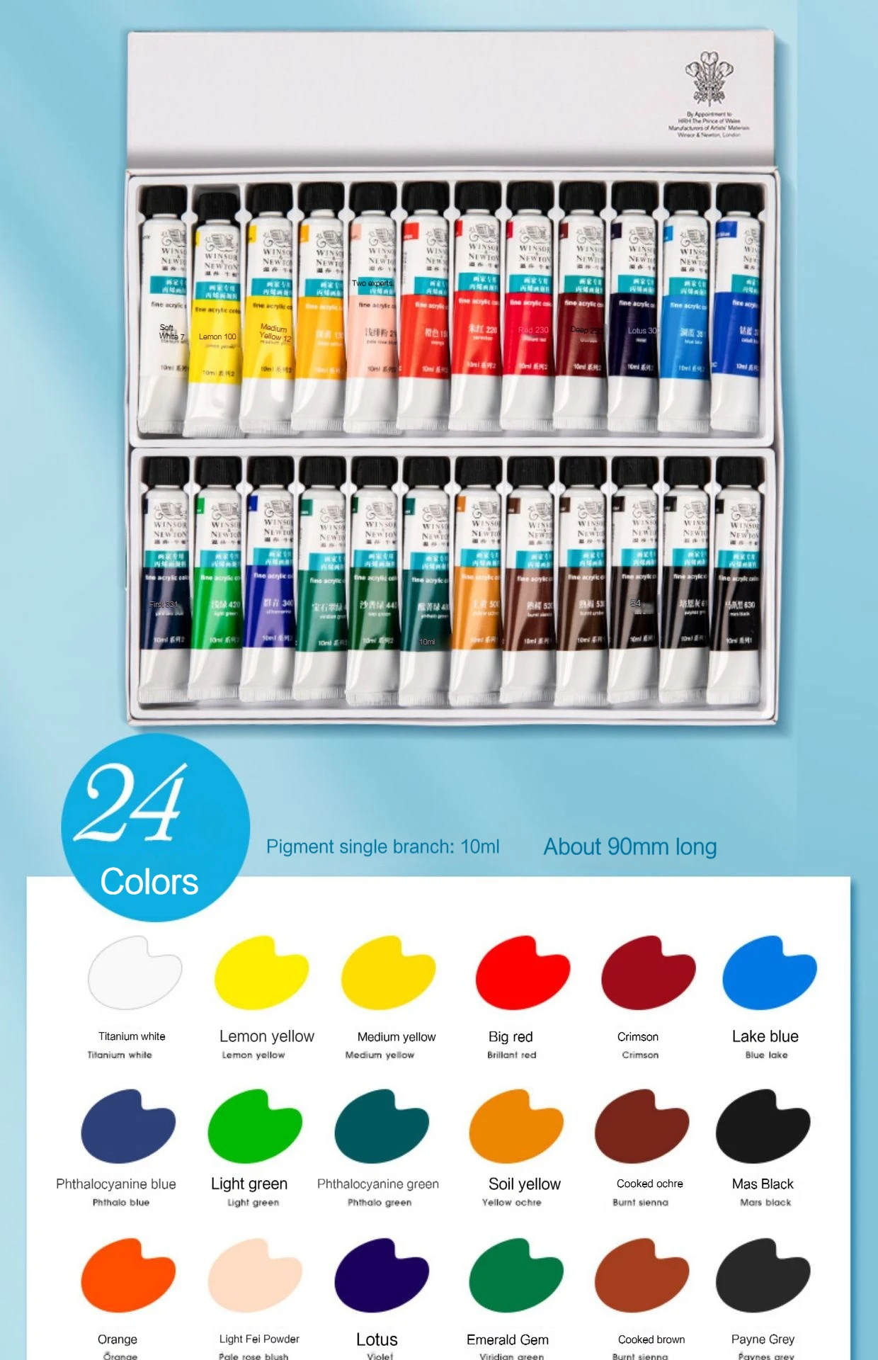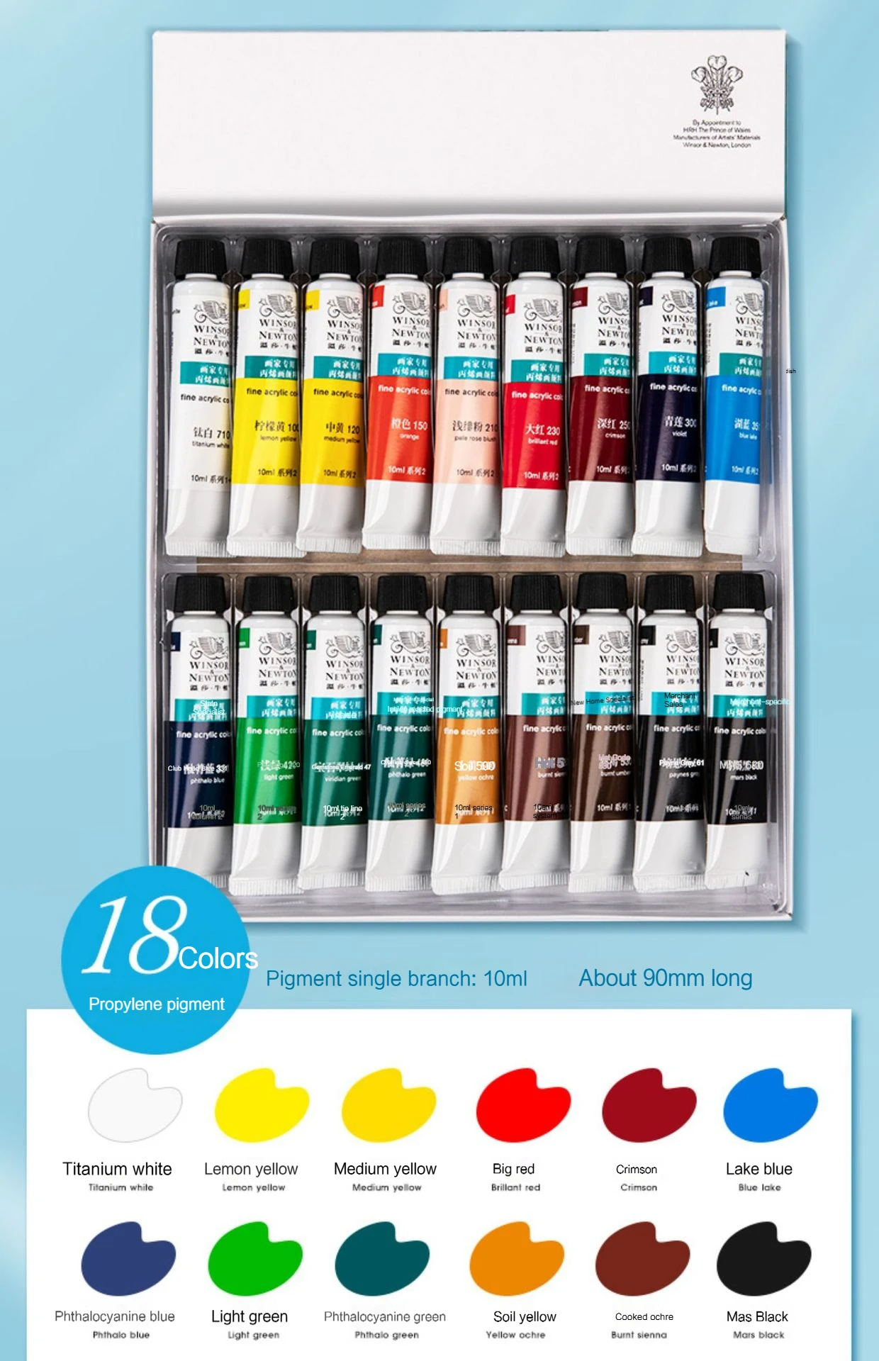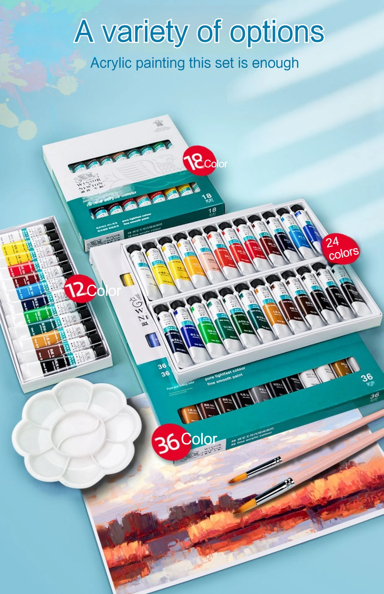 Windsor & Newton Acrylic Pigments For Painting 10ml Tubes Set for Wood, Canvas, Fabric, Rock, Glass Professional Art Painting Supplies Drawing Paint 12/18/24/36 Colors Paint Creative Graffiti Paints Non-Toxic Acrylic Paint