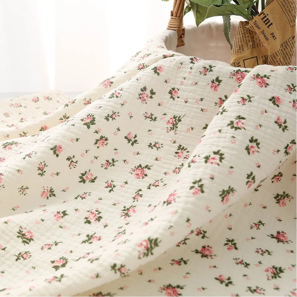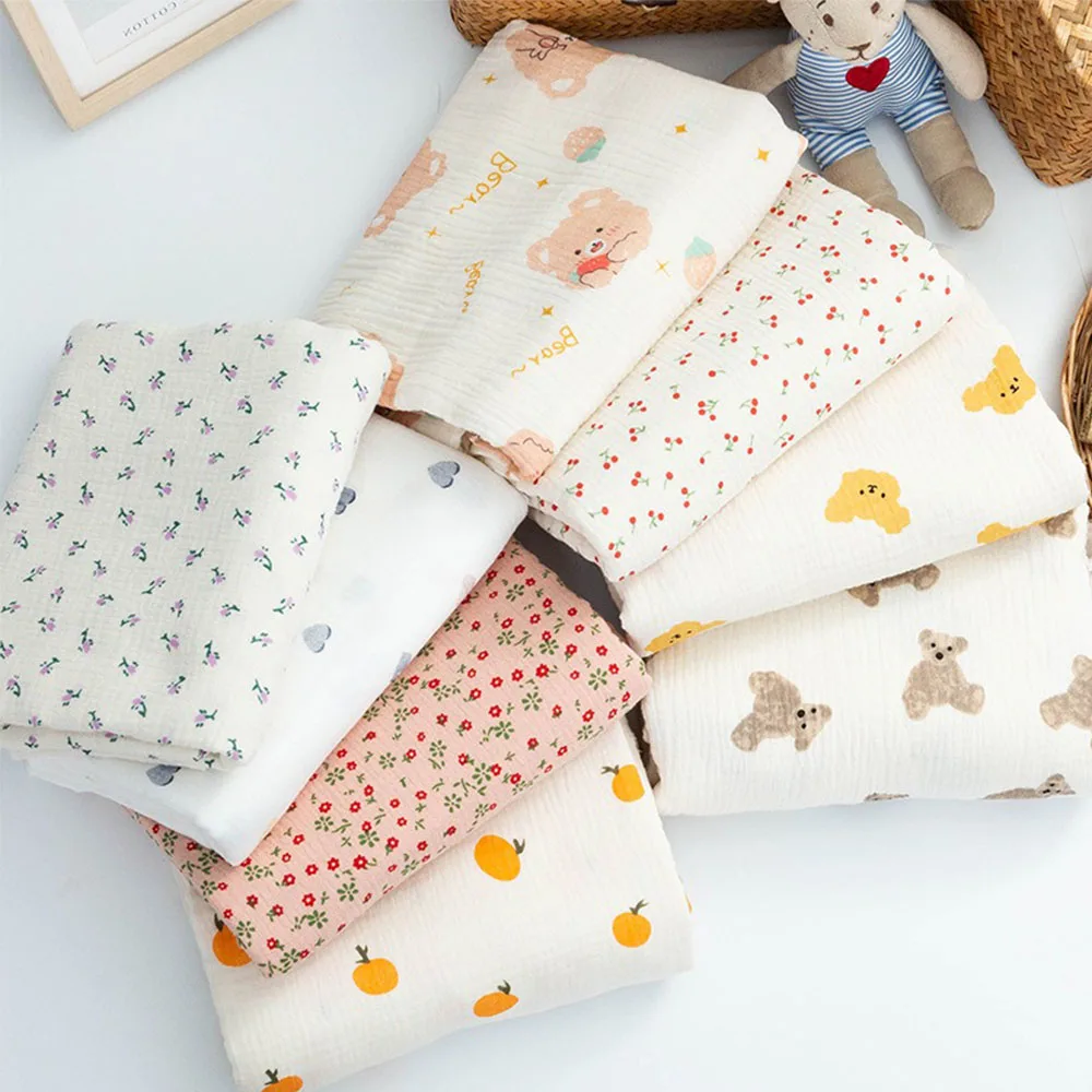 130x50 Printed Double-Layer Crepe Yarn Cotton Fabric Making Soft Pajamas Summer Women Dress Shirts Baby Clothing Cloth DIY Doll