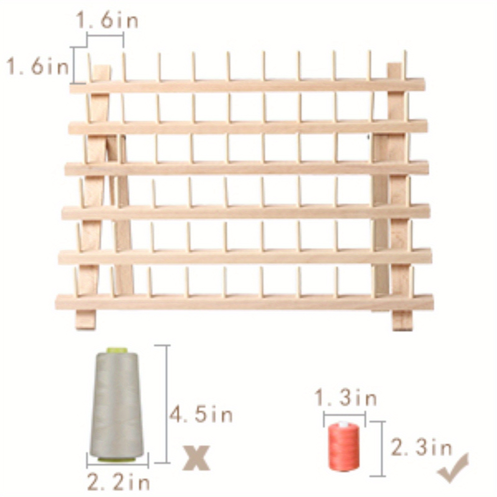 Specification Weight: 2.2 Lbs. Size: 15.7” X 12.6” X 11” Material: Natural Beech Wood Package Content: 2 X 60-Spool Thread Rack Instructions: Put On The Table /Mounted On The Wall Why Choose HAITRAL Sewing Thread Spool Rack?