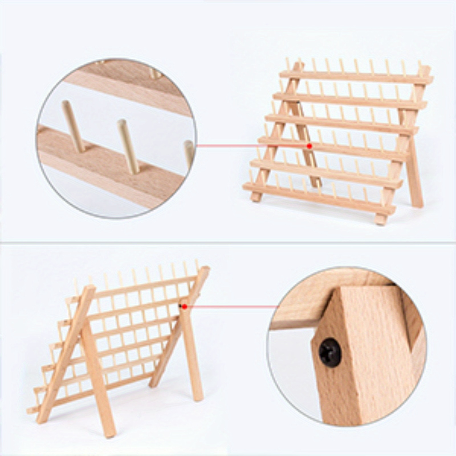 The High Quality Beech Wood Used To Make This 60 Spool Rack Is Designed To Be Long Lasting Along With A Beautiful Decoration Customer Could Use In Their House.