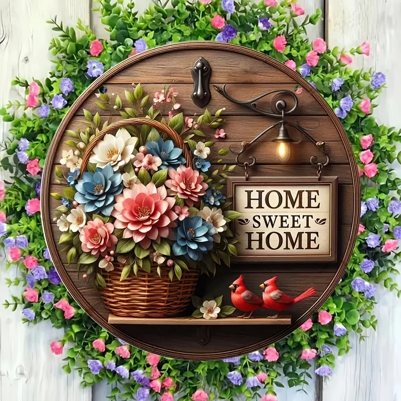 Spring Floral Wreath Wooden round