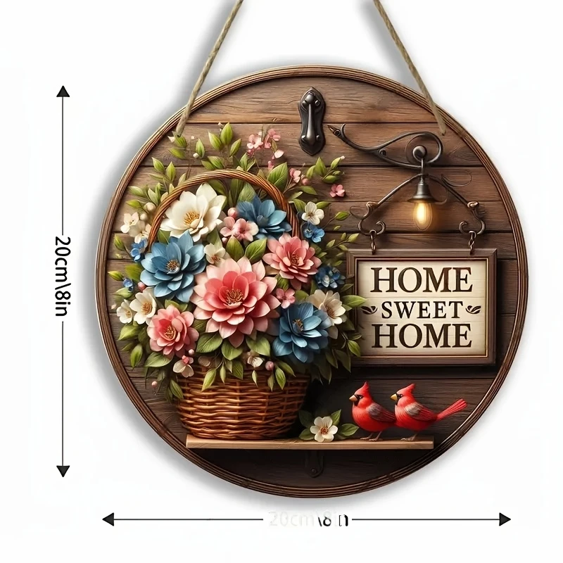 The wooden disk is a 2D flat color-printed product without engraving or hollowing-out techniques. It won't fade and can be hung on the wall or used as a decorative item. Top has holes and is tied with hemp rope. There are no holes around the disc.