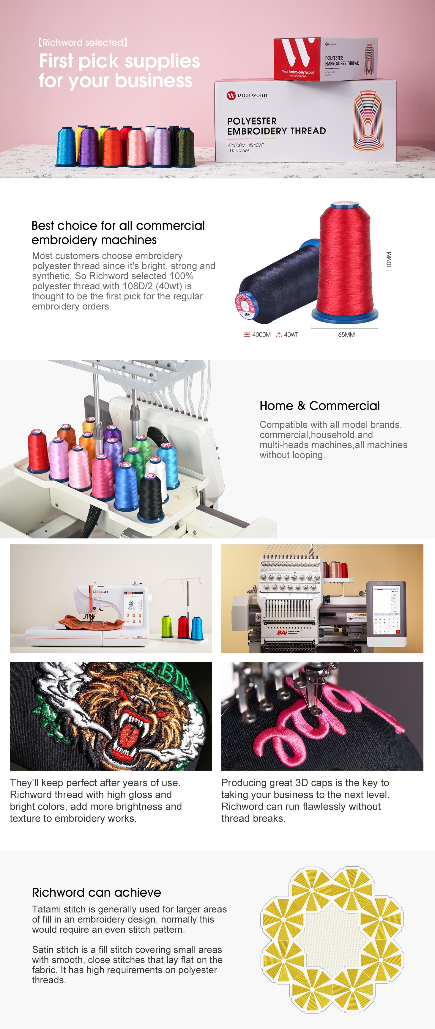 【40&60&100 Colours】RICHWORD, as a brand focusing on embroidery and sewing machines, has listened to the needs of users all over the world and selected the most popular 100 colors in 4 rolls for you to choose. Color cards can be converted to Pantone color numbers.