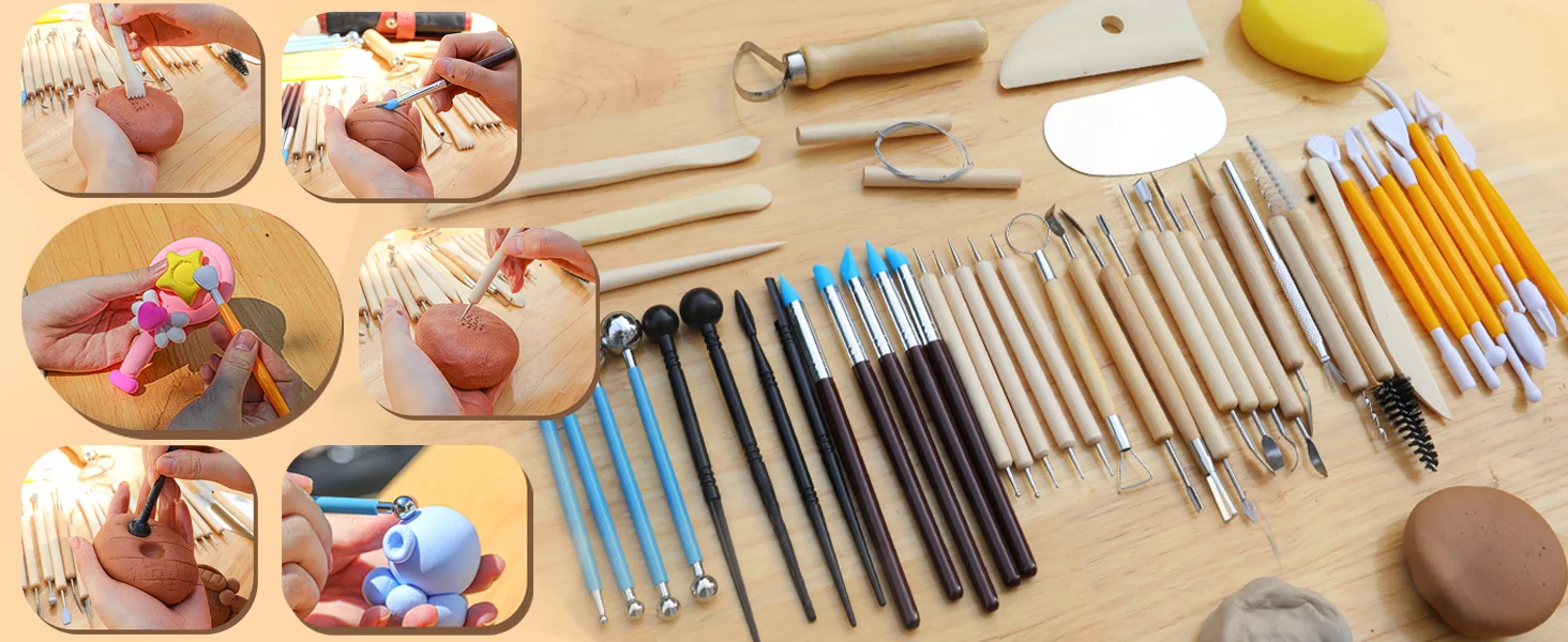 Our 41 pieces clay sculpting tools are used for hand building, sculpting, or wheel throwing. Experience the joy of creating stunning ceramic pieces with precision and ease. Whether you're a hobbyist or a seasoned artist, air dry clay tools are your perfect companion on your clay sculpting odyssey!