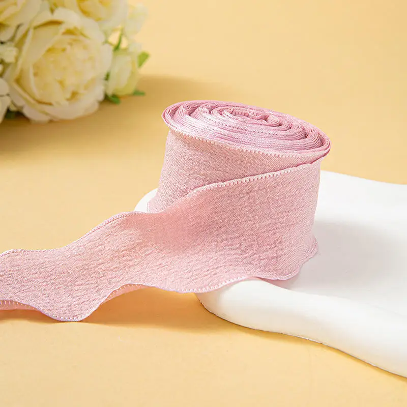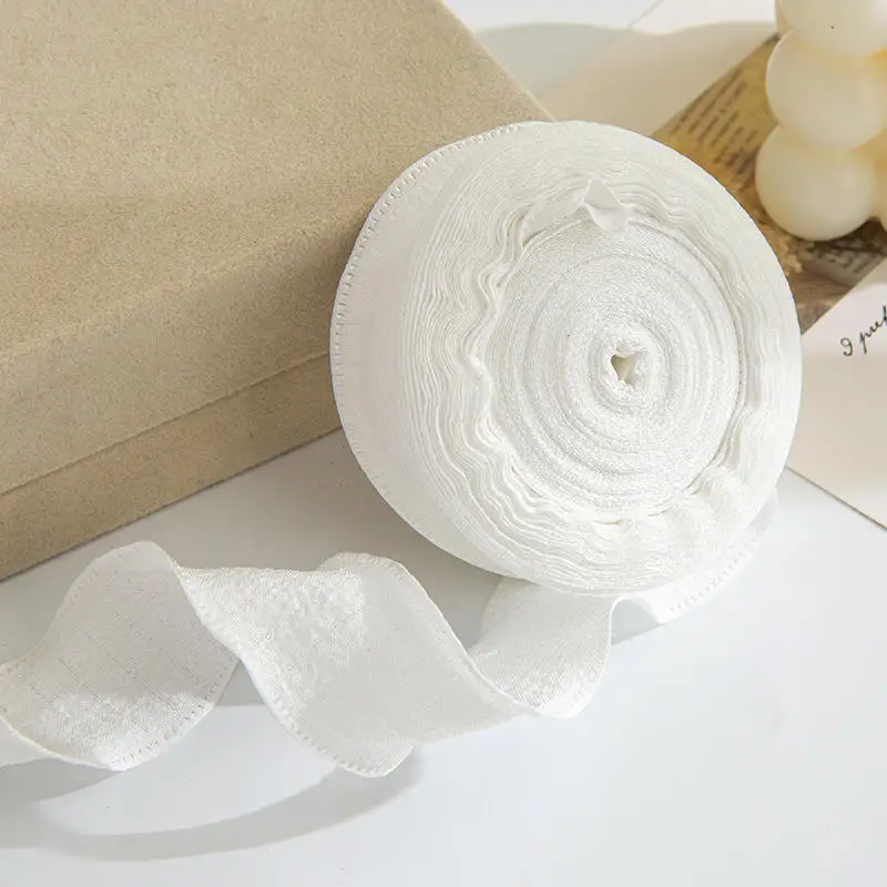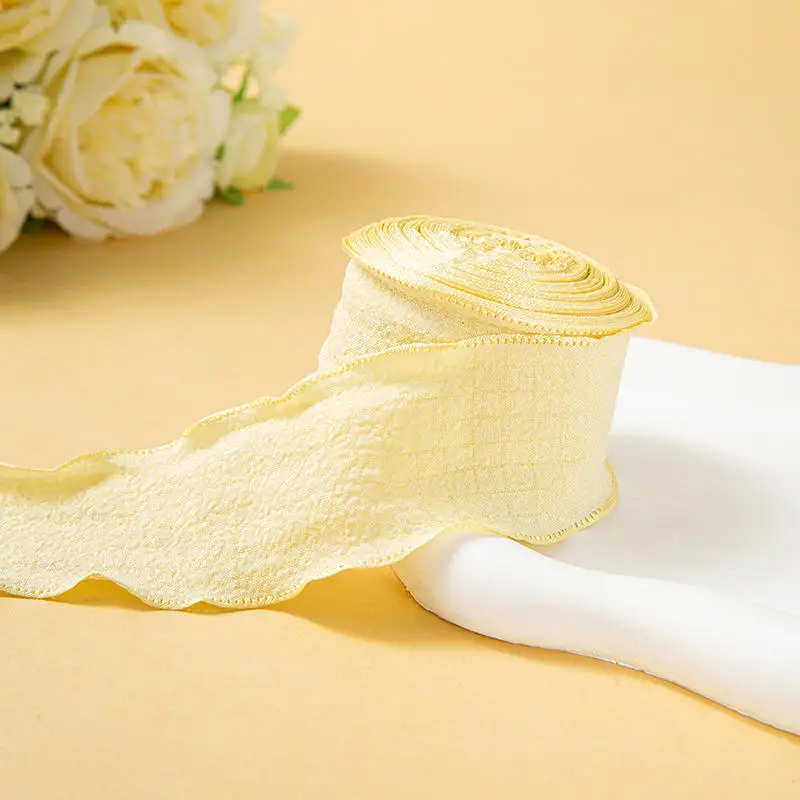 4CM 9 Meters/Roll Wrinkled Lace Edge Ribbons Flower Packing DIY Bow Hair Accessories Handmade Decoration Fabric Silk Ribbon