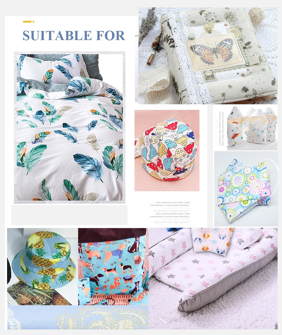 The item has a wide range of USES. Suitable for clothing fabrics, bedding, such as baby sheets, summer school uniforms, crafts, home decoration, tablecloth, curtains, quilt cover, chair covers and many more.