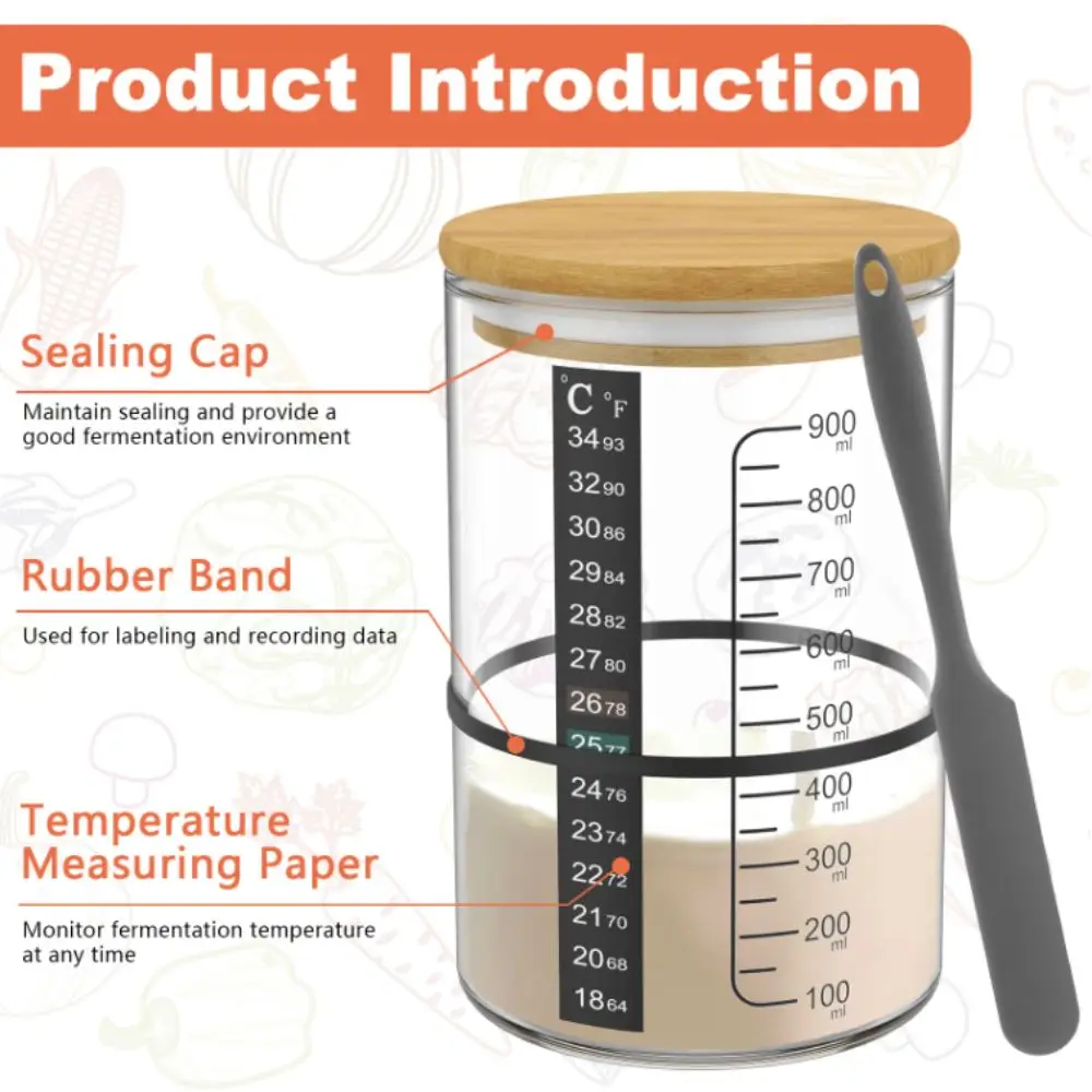 3.With Silicone Spatula and Wide Mouth Design: The package comes with a silicone spatula, which can be used to stir the food stored in the jar. It is easy to take out the fermented yeast.