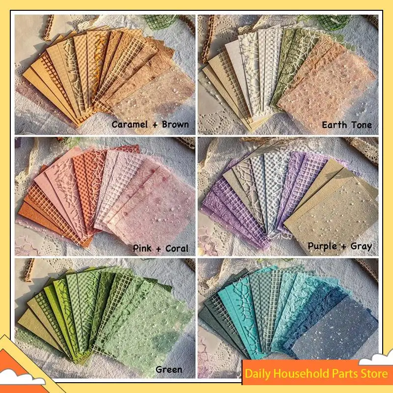 96 Sheets Textured Scrapbook Paper And Mesh Fabric Assorted Set,6 Pack Mixed Special Paper For Scrapbooking Planner HOT!