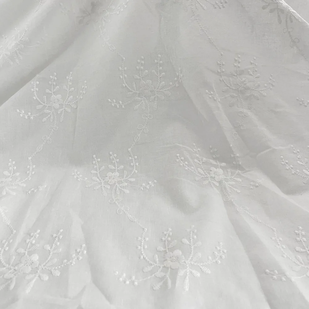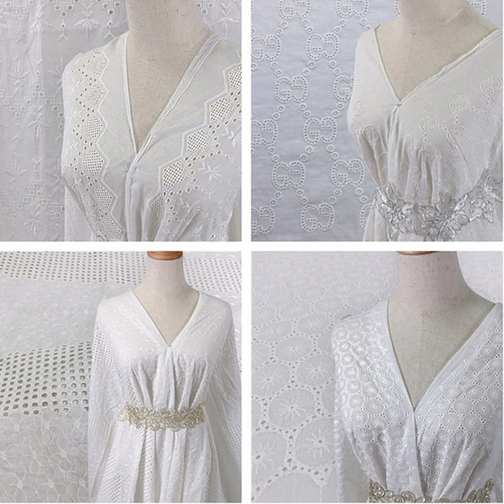 Materials:Made by good quality pure cotton. There is no fading, no stains, soft, skin-friendly and breathable fabric. Eco-friendly Floral embroidery cotton fabric; Light soft and thin through. Tested for harmful substances - therefore ideally suited as a summer clothes ,Wedding Dress and decorative fabric.
