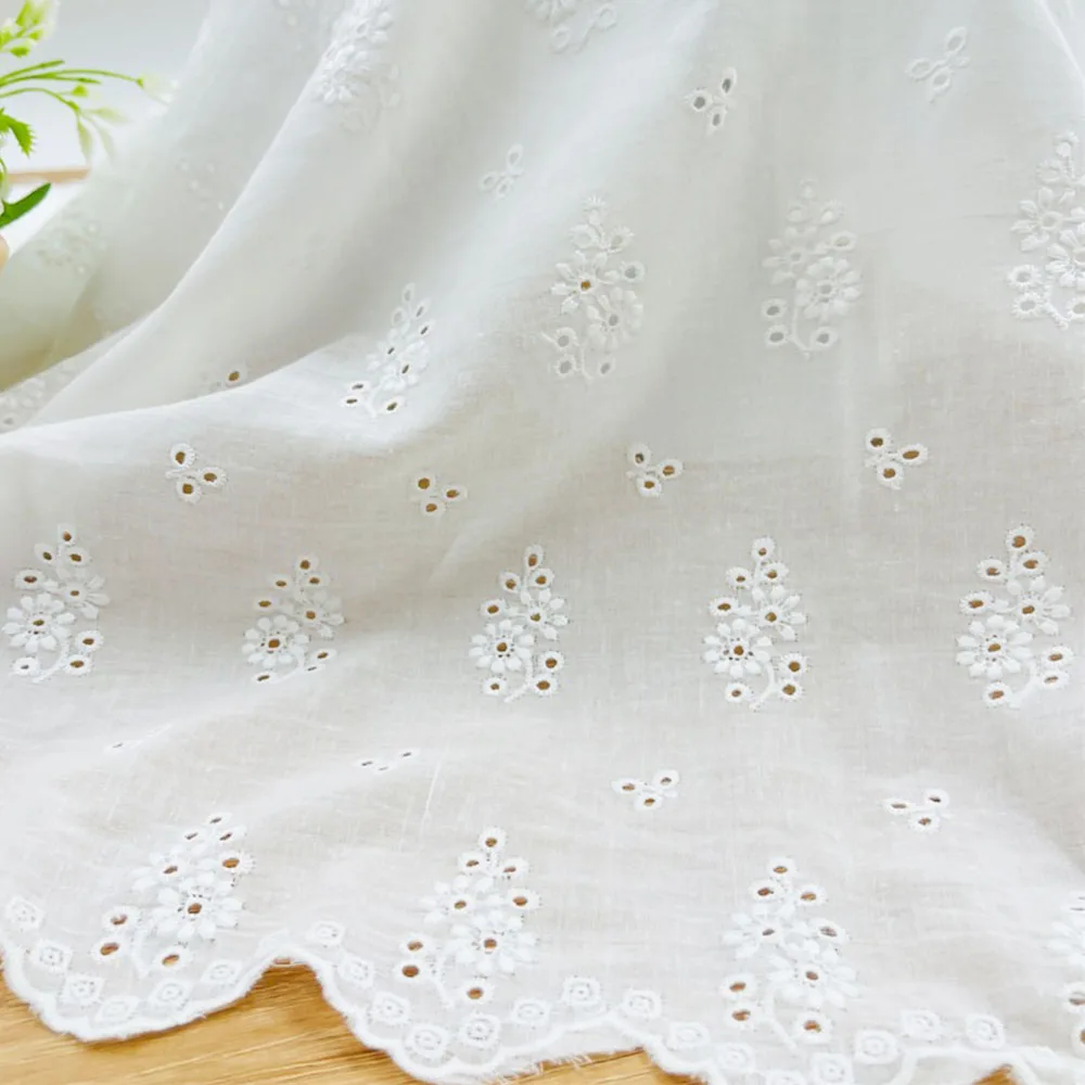 130x45cm Summer Pure Cotton Lace Fabric Making Skirt Clothing Wedding Dress Bridal Veil DIY Women Tops Embroidery Hollow Clothes