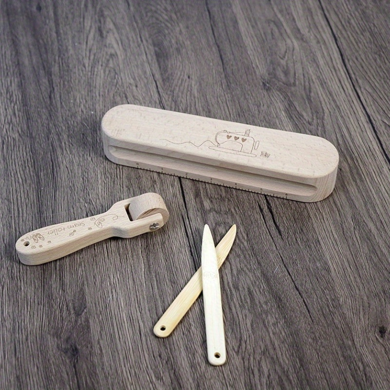 This set includes four items: a seam pressing plate, a fabric pressing wheel, and two bone folders. The pressing plate has rounded edges for comfort, and the grooves are designed for a smooth touch, making it easier to handle during use.