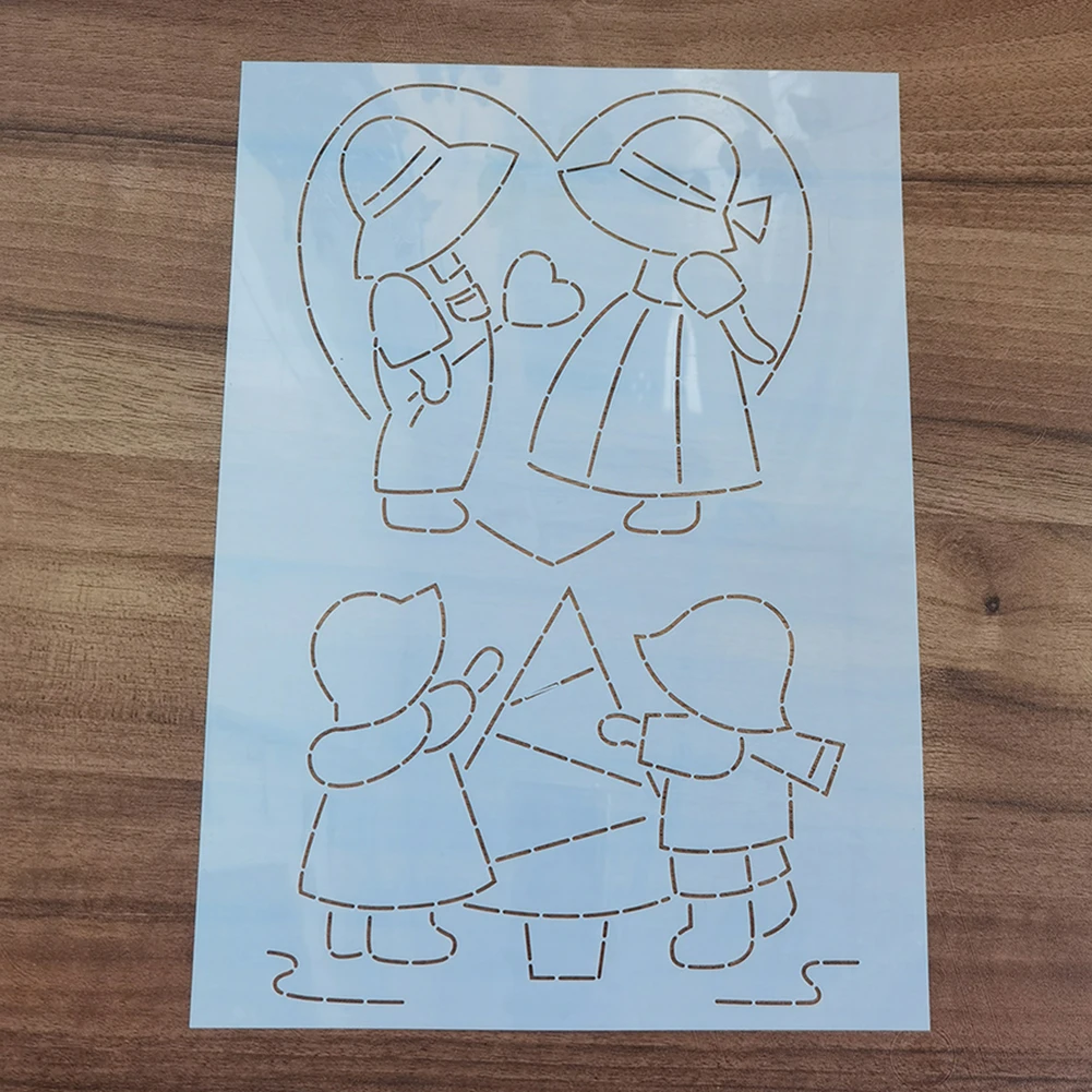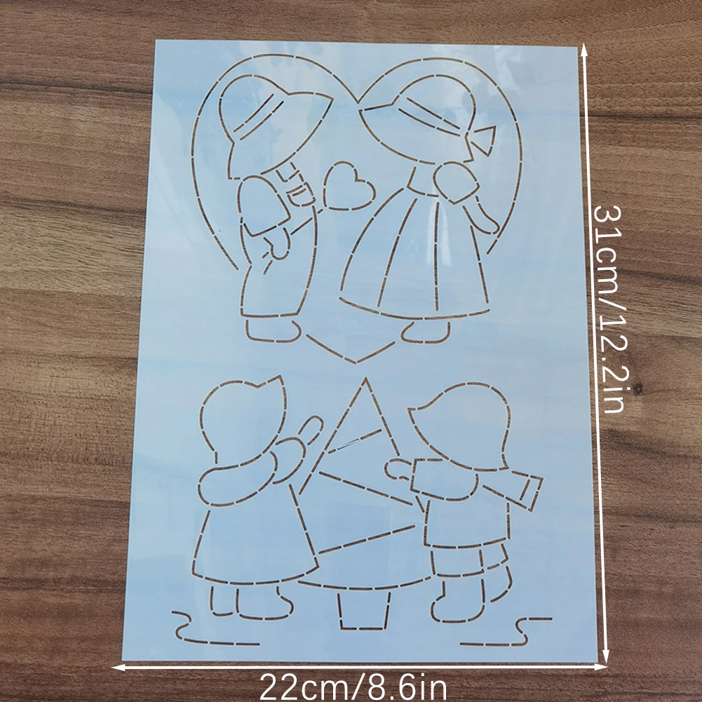 1X Cute Girls Combination Embroidery Template