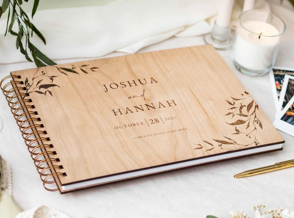 Our personalized wooden guest book is fully customizable, you can adjust any of the wording, including names and dates. Just enter your exact wording in the personalization box when you order.