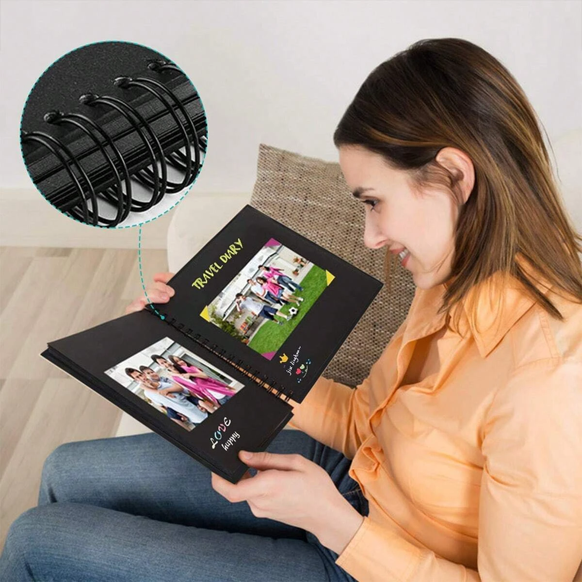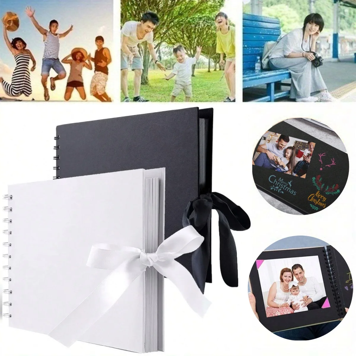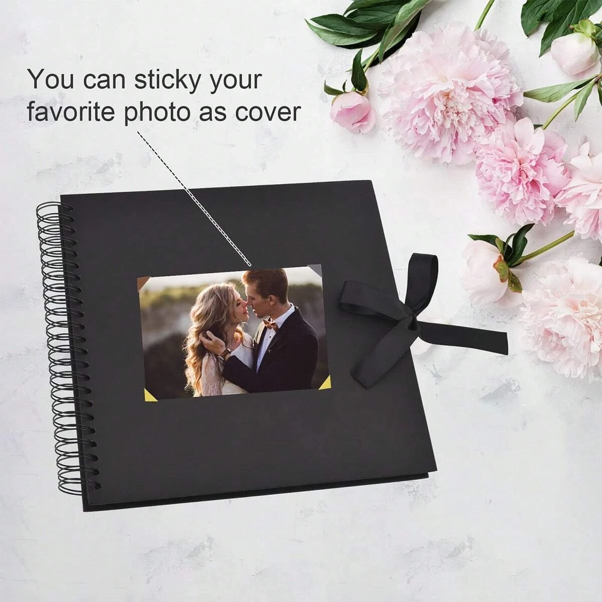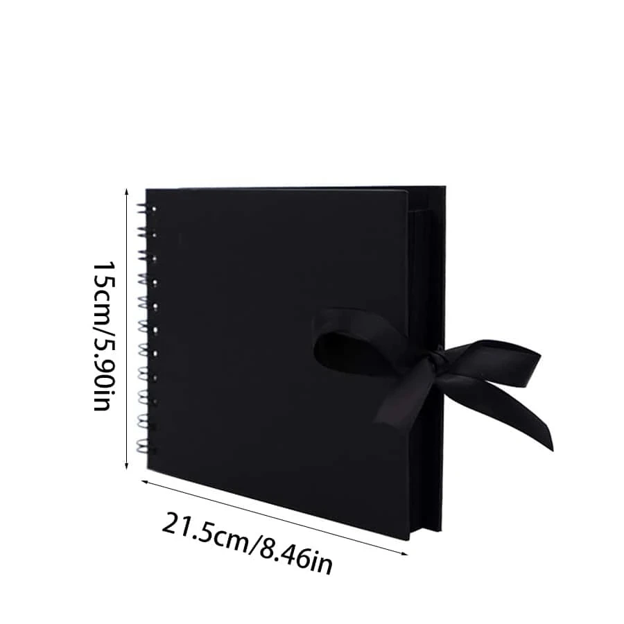 1. Cardboard cover, there are exquisite black ribbons on the hard card cover, and there are high-quality thick kraft paper black pages inside, which will not fade and keep your beautiful moments lasting.