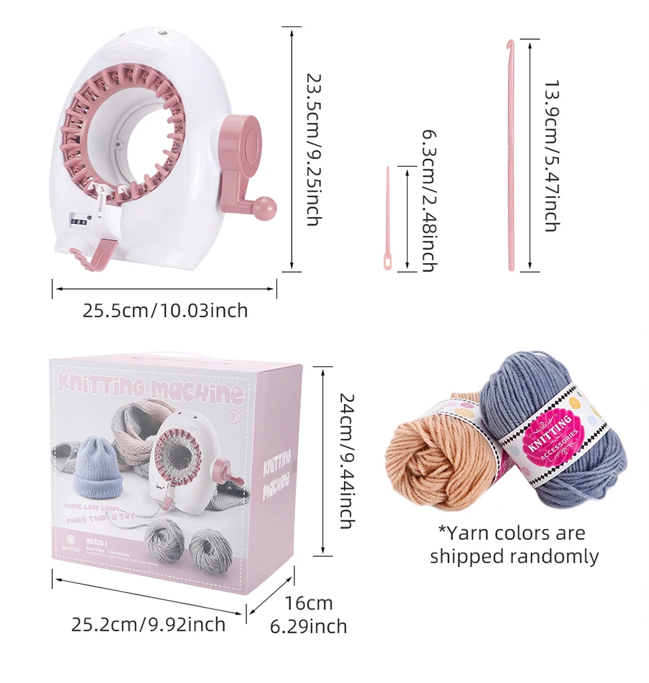 [What You Get] - 1 hand needles, 1 crochet needle, 1 knitting machine, 2 bundles of random color yarn, 4 non-slip mat, user manual.