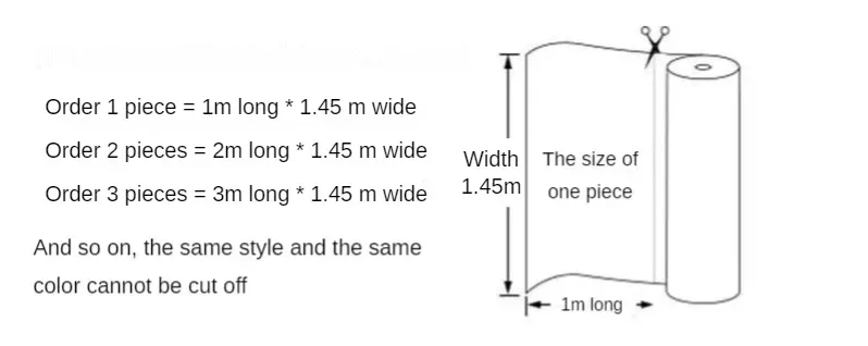 Order "50pieces" = whole piece: 50 meter *1.45 meter