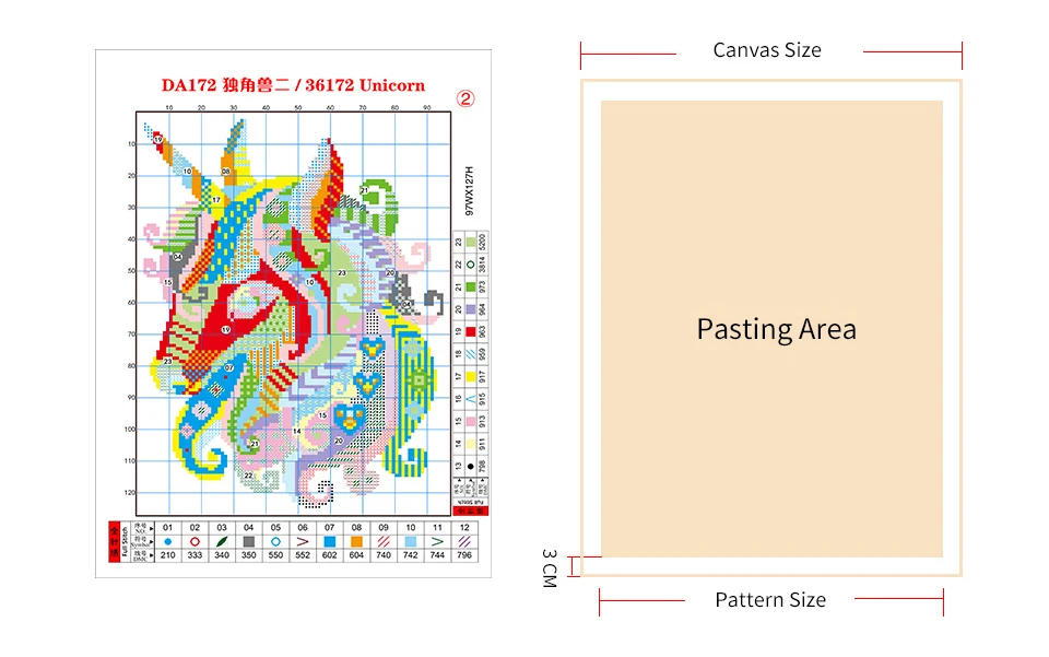 these specifications mean that the canvas has been printed with a pattern, and according to the symbols, the corresponding numbered threads are selected for embroidery;