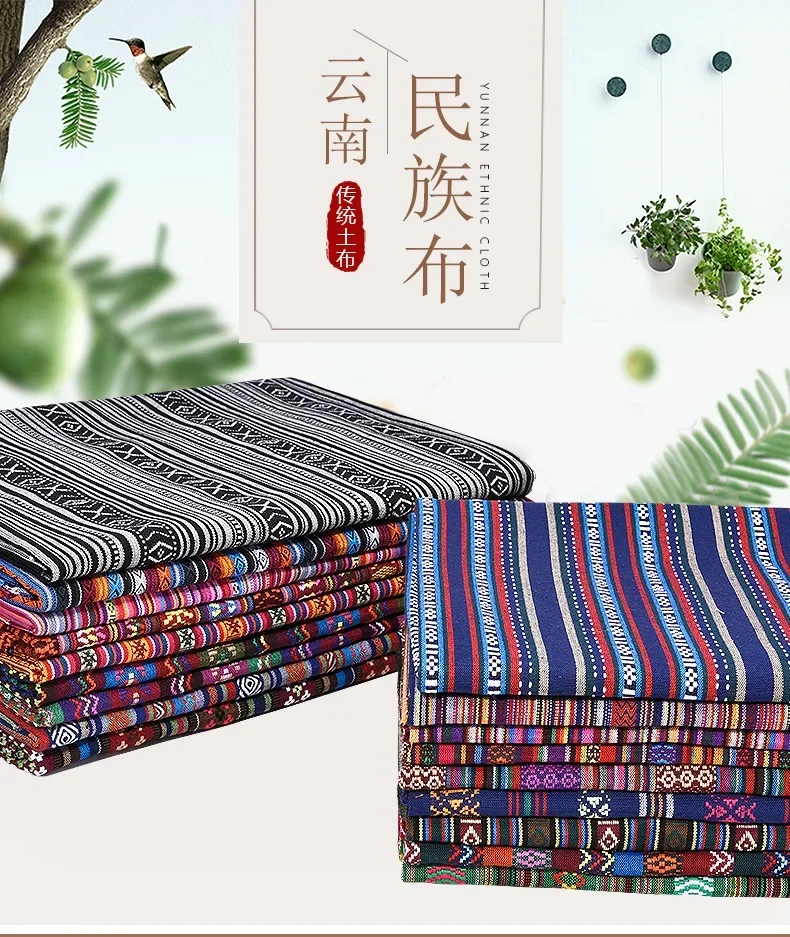 Yarn dyed Ethnic style cotton linen fabric clothing shoes sofas curtains tablecloth handbag handmade DIY polyester cotton fabric