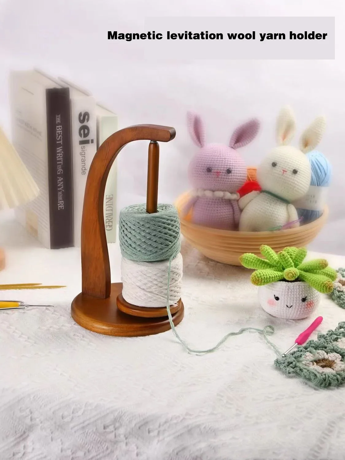 Wooden Yarn Rack Magnetic Levitation Storage Rack Rotatable Yarn Holder Distributor Solid Wood Double Shaft Yarn Shaft Storage